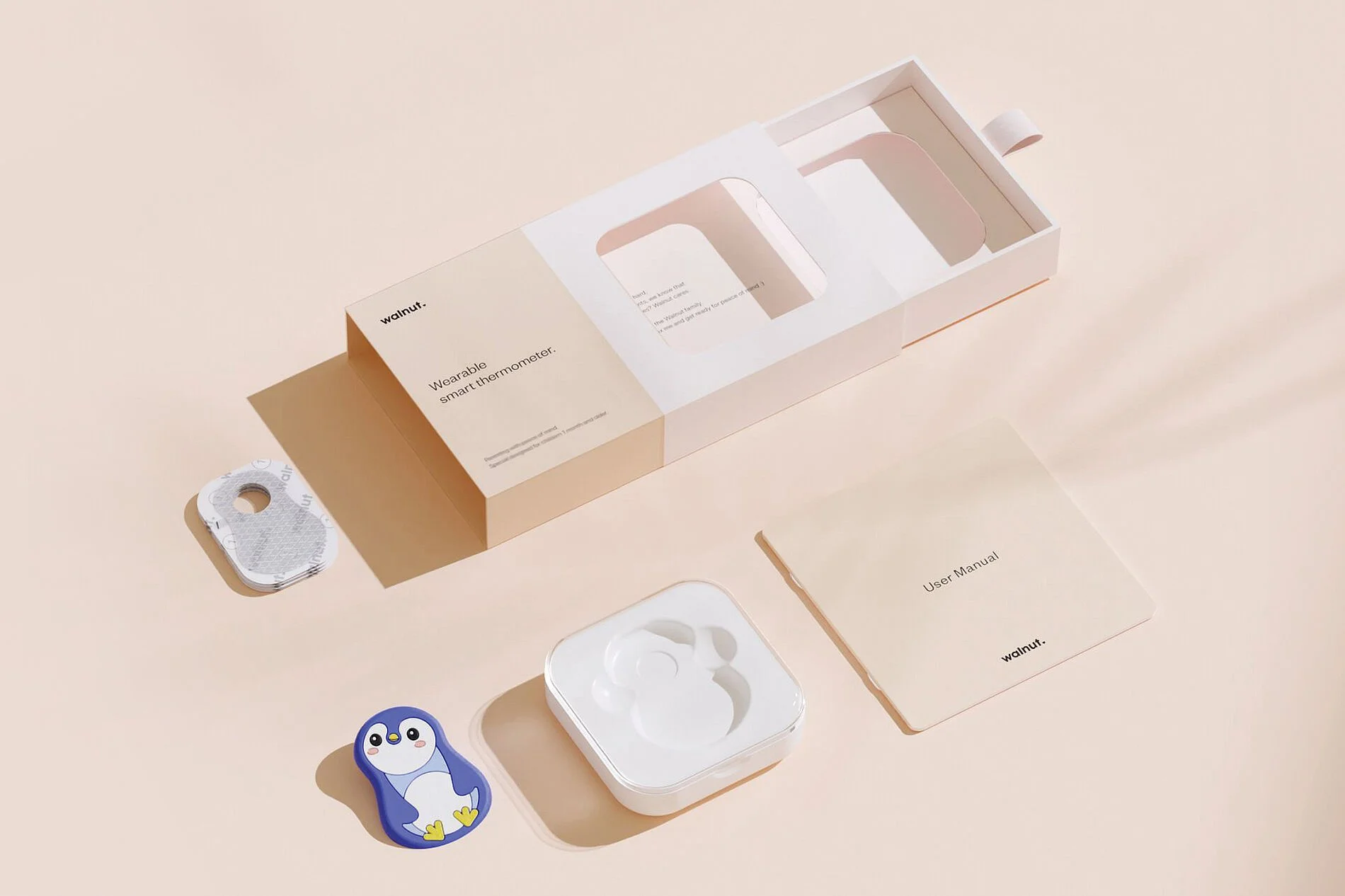 We created Walnut Thermal to shape the full brand experience—from visual identity and product packaging to UI/UX interface design. Built with both parents and children in mind, our design philosophy centered on empathy, clarity, and ease.